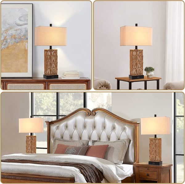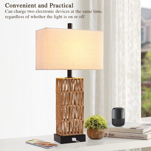 ❤【Dual USB Charging Ports】This pair of rustic farmhouse table lamps comes with two 5V/2.1A fast charging ports on the bottom to charge two of your electronic devices within arm's reach at the same time, such as: cell phone, kindle reader, tablet, humidifier, etc. Whether the light is on or off, it is very convenient and practical. Ideal lighting for your bedside table, end table, study area.