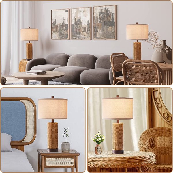 【Hand-woven boho table lamp Set of 2】This tall bedroom lamp perfectly display the integration of home decor and nature.Hand-woven by artisans with over a decade of experience. The whole lamp body is made of all natural seagrass wrapped with rattan in a unique way, highlighting the natural color.Each lamp is a unique handicraft.