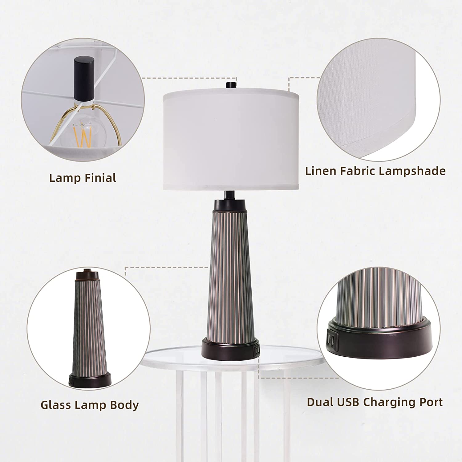 ❤【Superior glass table lamp】Made of glass with a striped finish, it presents a vintage appearance that will stand out in any arrangement.The black glass body of the lamp brings a mysterious visual experience. The black metal base adds a retro charm to this rustic lamp. With white fine linen lampshade, so that the whole lamp does not look dull. Ideal for your living room and bedroom decor..