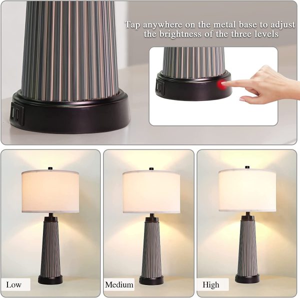 ❤【Sensitive 3-way touch switch】The modern bedside lamp has 3 levels of brightness selection (low/medium/high) .Built-in high-quality sensor,just simply tap on anywhere of the metal base to adjust the lighting to meet your different needs.It is quiet enough not to make a noisy tapping sound like a traditional switch.